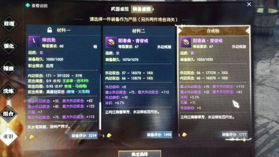 求重铸达人 渣渣手机拍的不清楚 选了3 拿什么武器继续怼比较合适 以怼4攻为目的 洗出高数值的也收手