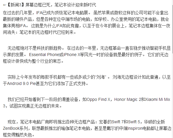 ☞【新闻3】屏幕边框已死,笔记本设计迎来新时代