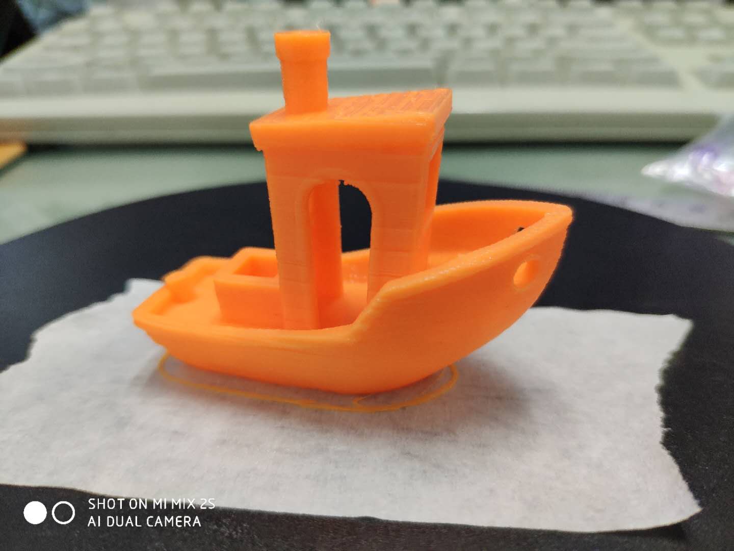 3、可能是呆在空调房(25°C),第一层很难粘到美纹纸上,裙边特别容易翘边,目前是用双面胶……该翘的还是翘……买了热床,过几天才能到货(PS.圆热床怎么比方形的贵那么多)