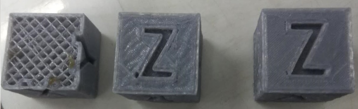 今天试打了三个方块,打印效果如下,Z面还好,但是xy方向四个面惨不忍睹……
