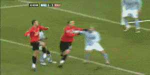 要不是穿着同样的球衣 我会以为他绊倒了对方球队的球员 估计他队友心里万马奔腾的想骂他傻B
