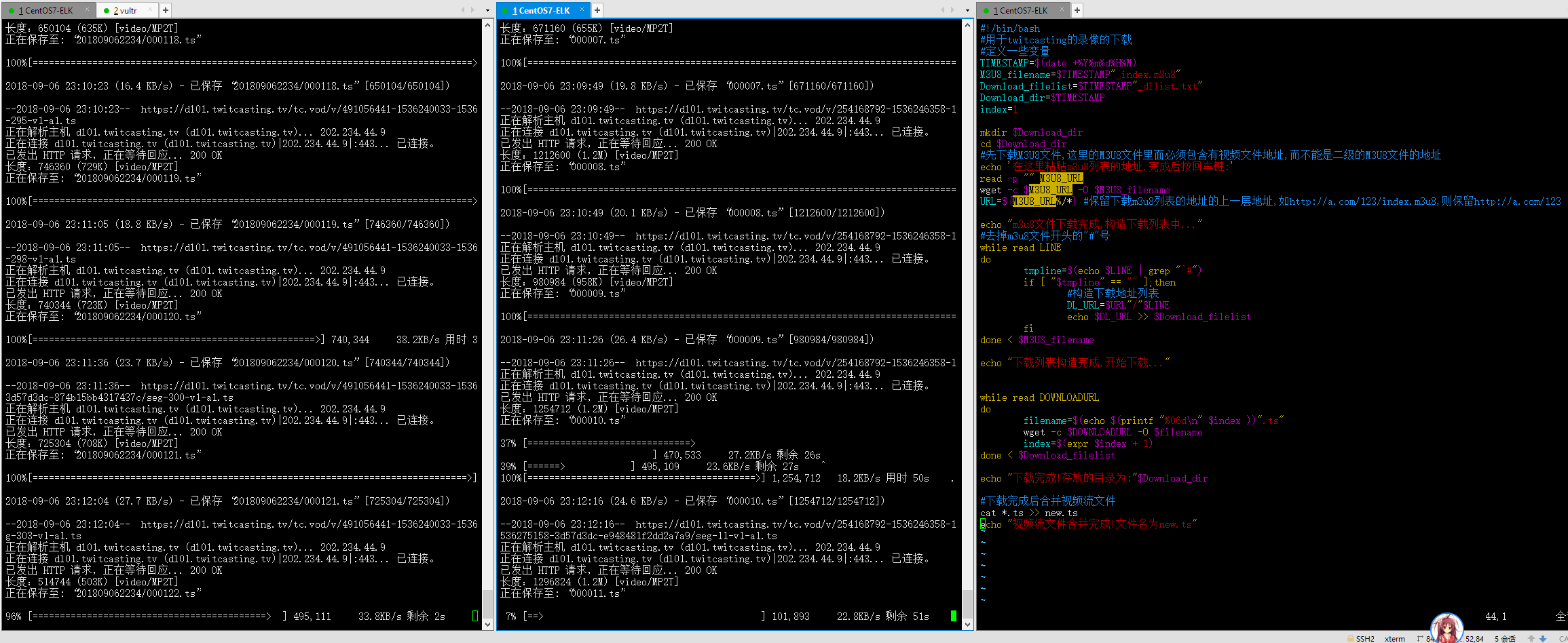话说这个比openrec.tv的好搞定多了,m3u8文件的位置十分明显,我写了个脚本,只要输入这个m3u8的地址,就能自动构造好下载视频流文件的列表,然后自动下载,自动重命名,自动合并成一个完整的视频出来