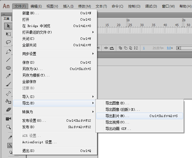 文件—导出—导出影片,快捷键ctrl+shift+alt+s