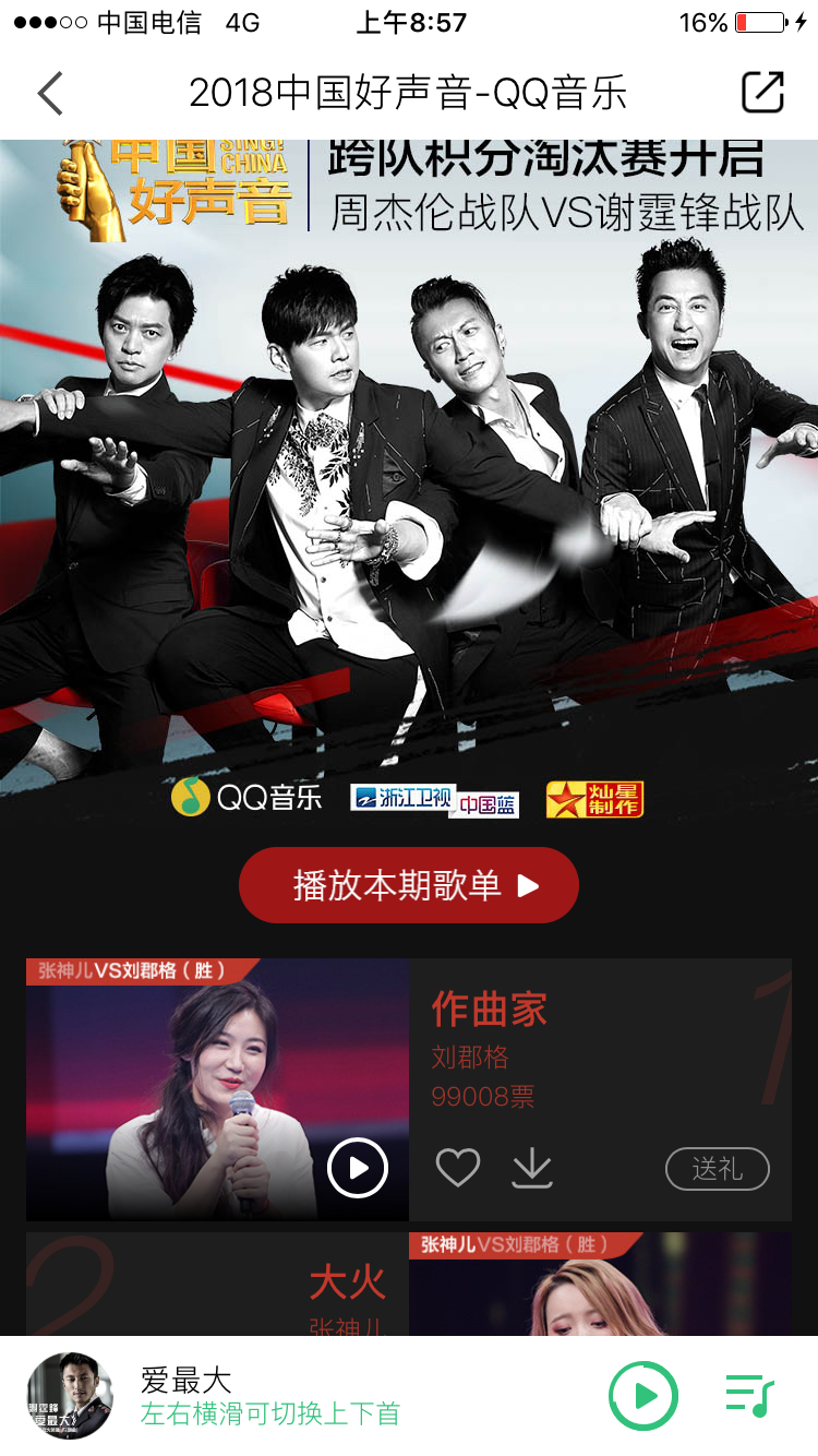 酷狗、qq音乐搜中国好声音去投票