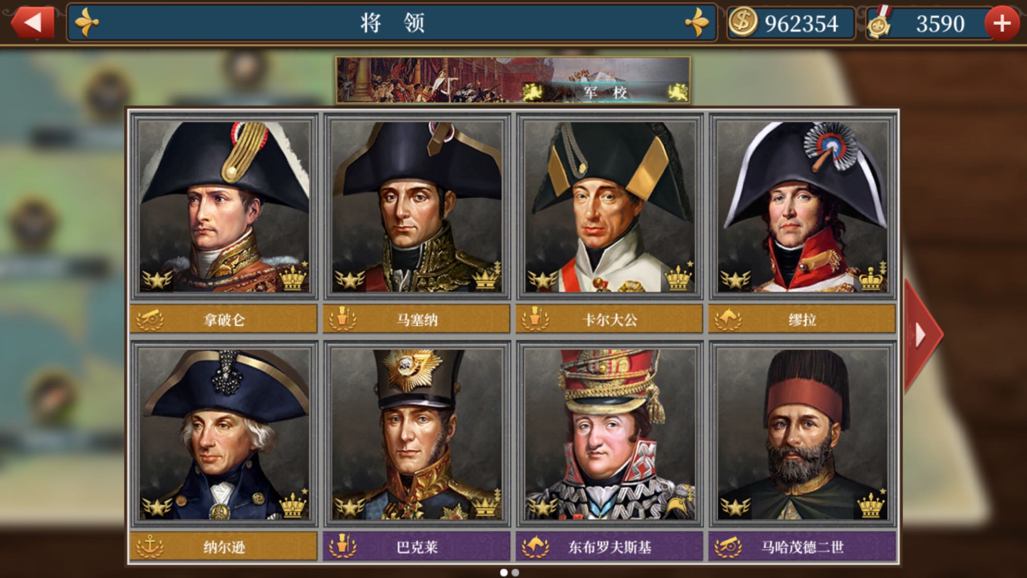 ,可惜萌新手残啊,马真塔卡了半个月,恰好新开1815加上肝荷兰升科技升技能才战役全三星。我还有几个挑战没打,能凑一个将的章,需要入一个卡尔大公吗,感觉步将不太够用,或者纳尔逊?