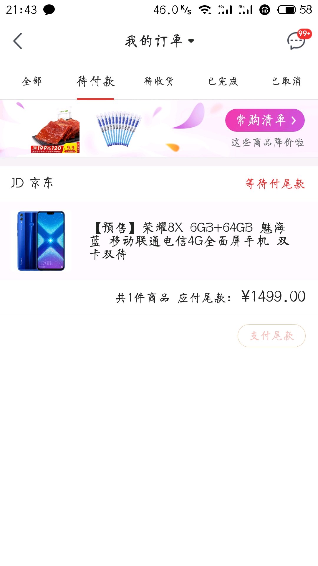 已经在京东预定了6+64的荣耀8x,但是在逛苏宁的时候,看到