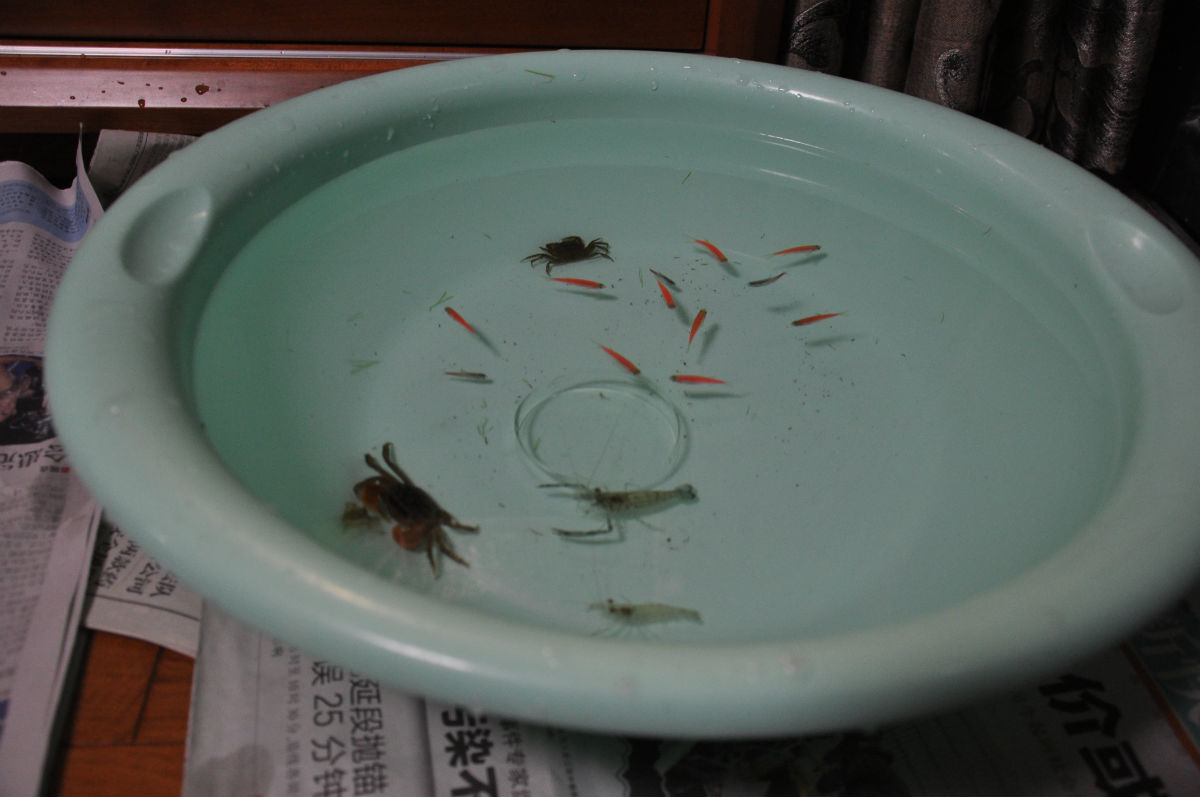 下面和螃蟹在一起的红色的是什么鱼?求教。