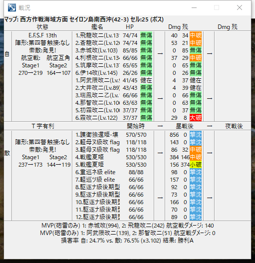 莫名其妙斩了没反应过来截图...只有航海日志的战斗情况了,绿飞机没带够互角结果一发平A带走了