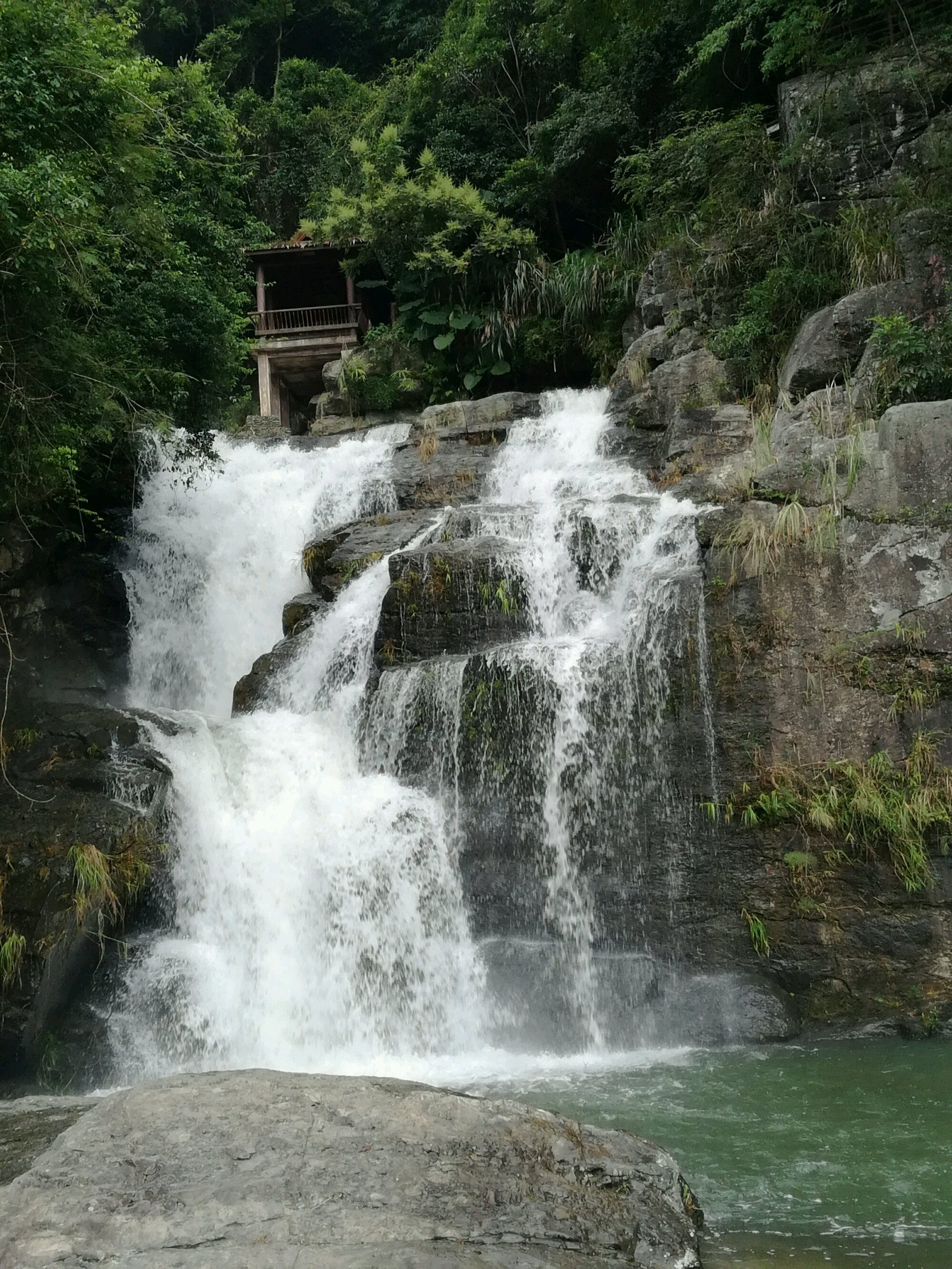 广东省揭阳市揭西县京溪园,你百度一下“黄满磜瀑布”就能看到许多靓图,我手残,拍照无能