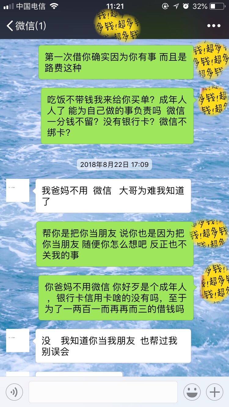 我现在遇见借钱的就头大,现在又不是没信用卡,没信用卡也应该有花呗吧.这两样都没有就知道没信用没能力的人了,不需要去理