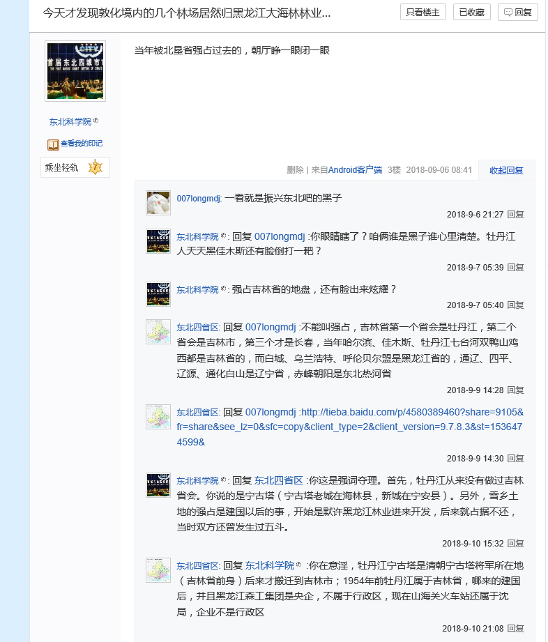 在双峰林场,问过当地人,他们也说双峰林场地界在吉林省。林场员工中传说着吉林与黑龙江正在争林场地界,他们说,不管归哪省,收入高就行。