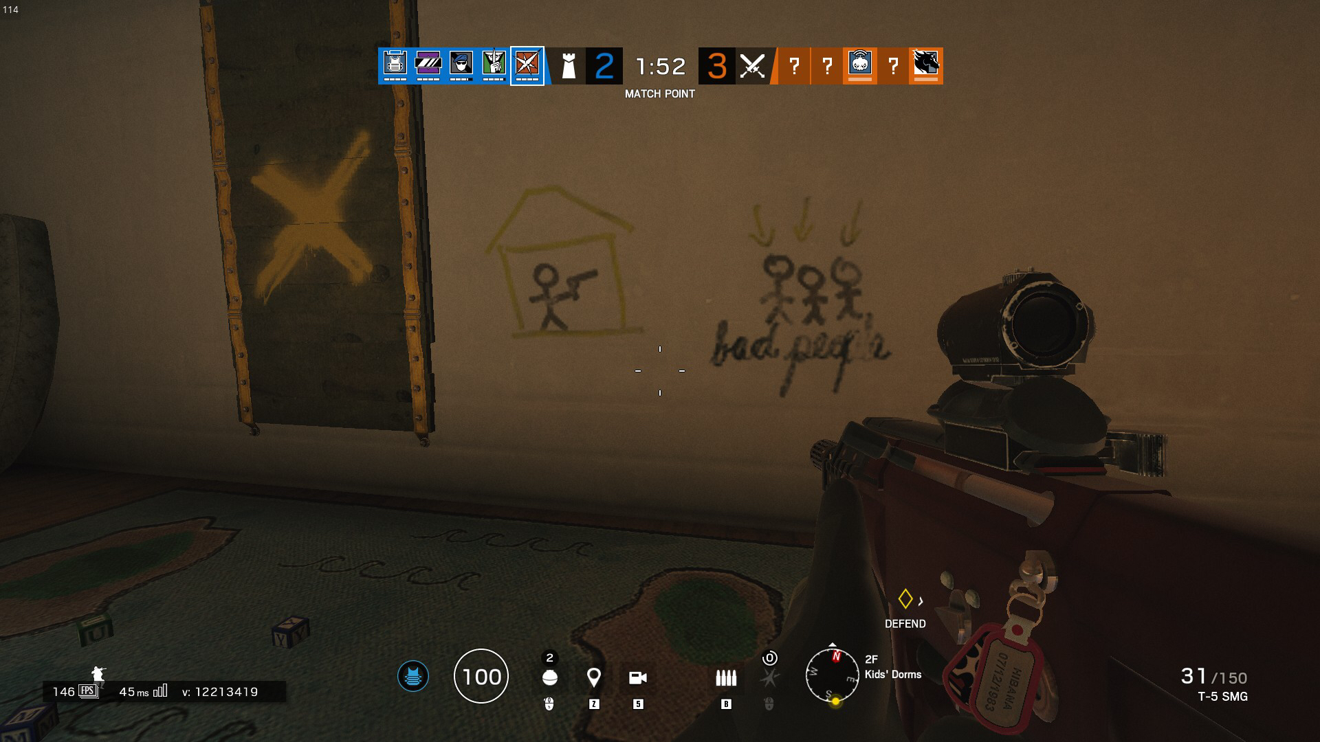 原型韦科惨案,这是邪教的据点,然后墙上的画应该是邪教的小孩子画的,bad people指过来抓人的特警