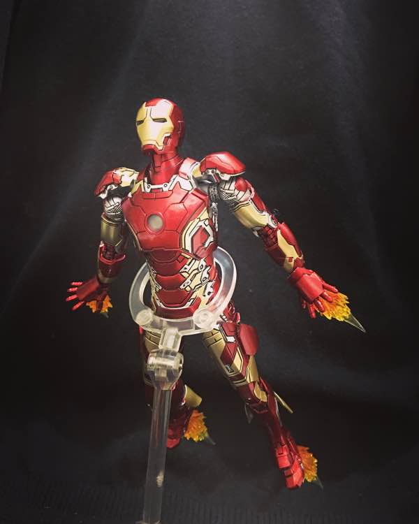 楼主第一次发现这个牌子的时候是八月底在咸鱼上搜索钢铁侠看到,于是上了淘宝和网上的测评看了下,果断爱上了这款mk43,红色加金色的漆面。可惜mk43和42都没货了,在版问了客服也得等到明年,新款的mk7又得等到十月,楼主按耐不住躁动的心情只会去咸鱼搜索,刚好遇到一个兄弟95新全赔无损价格也适中于是果断入手。在1/12的小比例里能亮灯又有这么多配件又合金又能砸地真的很棒了,刚拿到手的时候真是爱不释手。缺点嘛脖子太长两边肩甲太妨碍可动,装上肩炮的时候如果手臂往上抬幅度大一点肩甲直接脱落,还有就是手的替换手关机也太紧了吧,基本每个手型都要扩控才能装,不然太用力实在怕把球形关节弄断。脚腿的两边倒流版太松,基本第一次打开就松了,实在想不通。现在这个厂子的趋势也是有点担心,如果有新产品还是会关注的,期待下mk7![[吐舌]](/static/emoticons/u5410u820c.png)