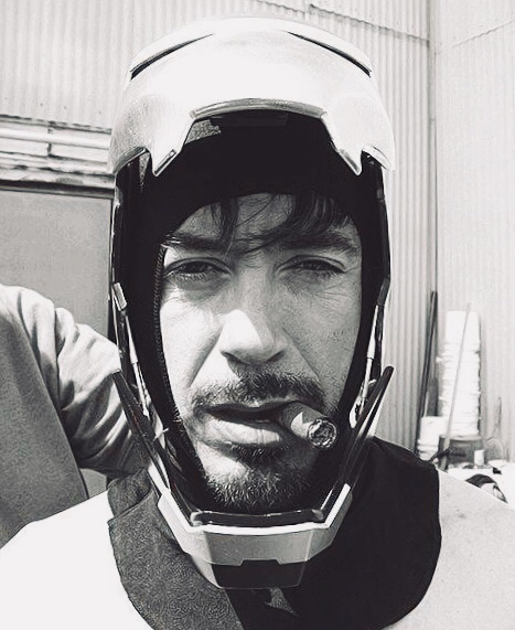 记得片场照就是这个表情 带着头盔叼着雪茄 可惜铁人的头盔都带