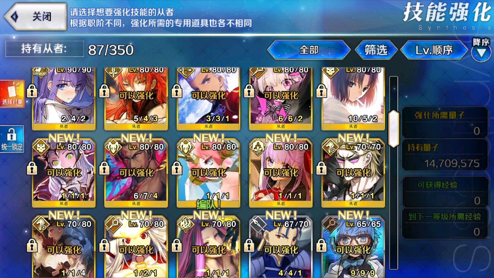 练度较高,主要从者最好满技能。