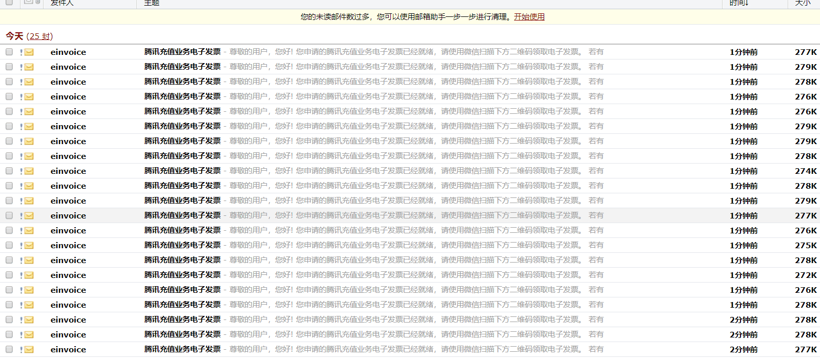 Invoice来了。上百封邮件