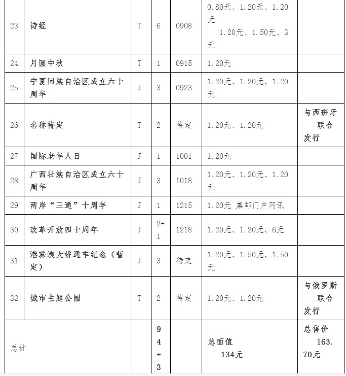 【9.14】貌似2018年邮票的实际发行=发行计划