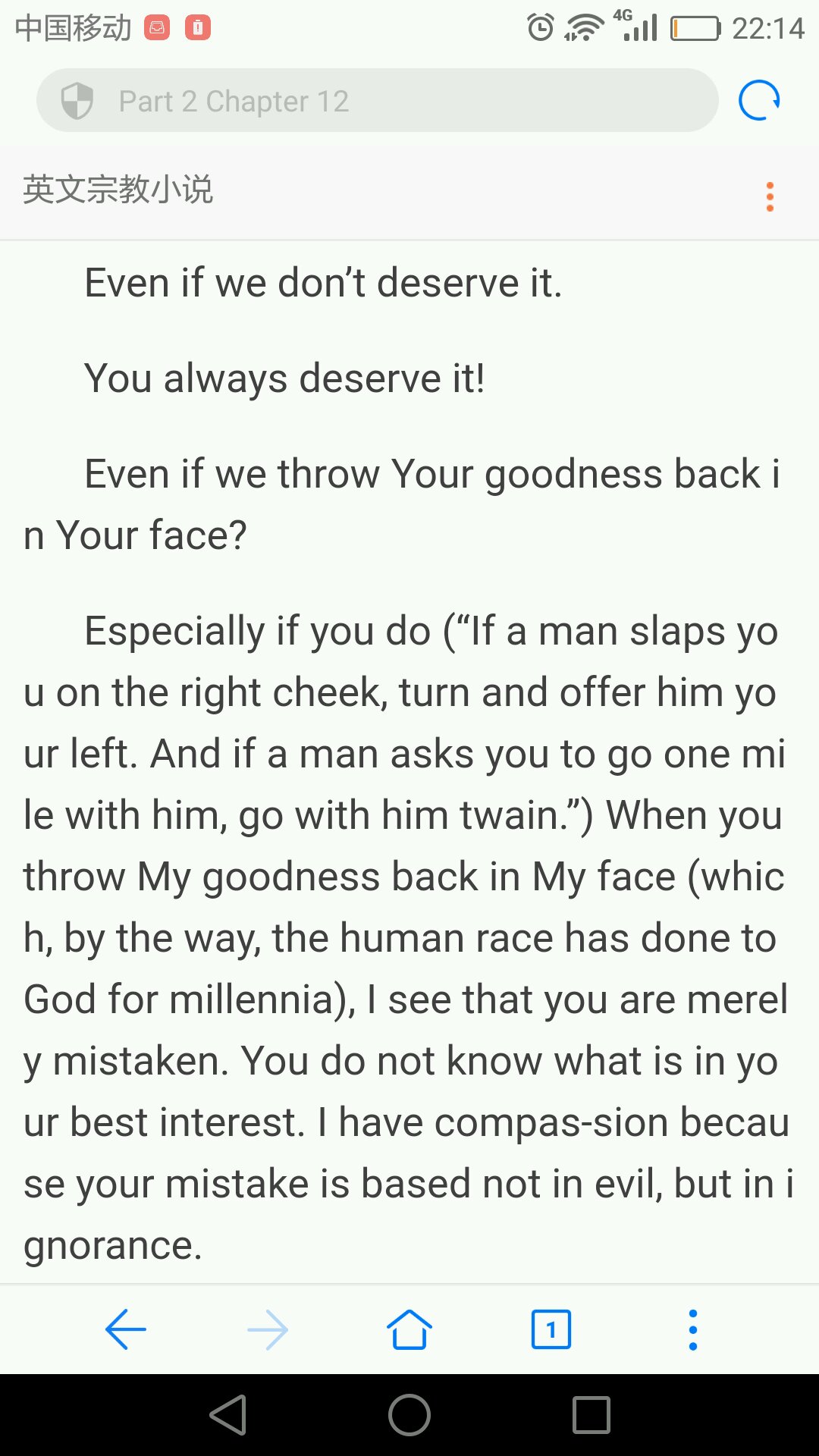 截图中的最后一句话,神说我之所以慈悲,是因为你们的误会并非出