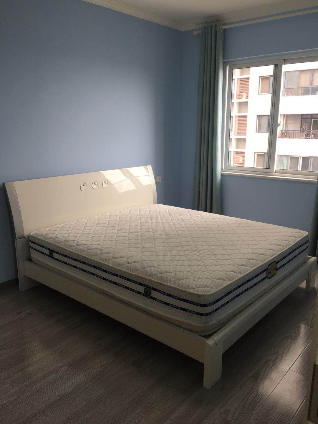 每个房间均有大窗户,朝南有遮光窗帘,通风透气。床,衣柜和书桌,都是全新自住的家具。