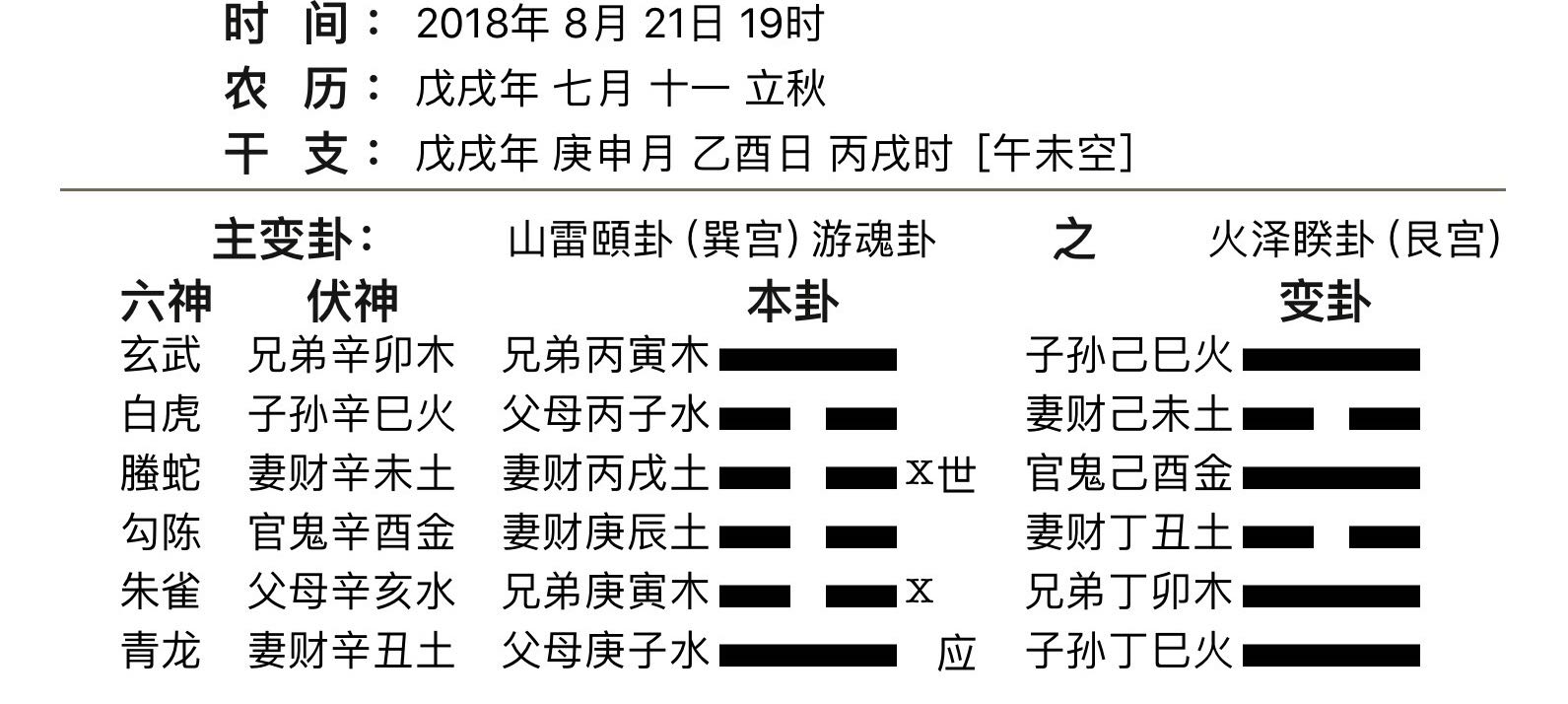 占财,破财是肯定的,克世又世变鬼,问题是自身安全危险到什么程度,还能得到哪些警示,有点把握不好,新学,对象法还不能融会贯通,期待高手指点。这个是朋友,希望能够趋避。