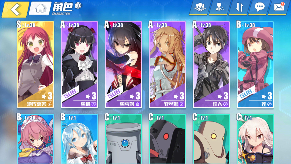 阵容就这样。惠美没想练,无奈唯一金。21号桐人 阿丝娜加强还行,想上优纪但没抽到,初春攻太低能不练不?