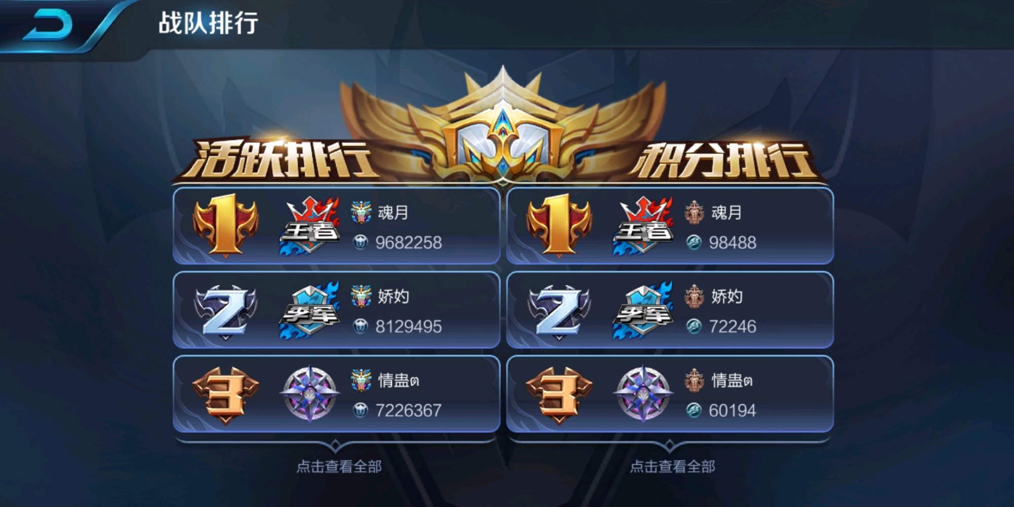 2.每周战队赛(所有)四连胜,瓜分200红包 3.赛季末成员总积分前八,赠送最高传说皮肤 (积分都必须达到750分以上)