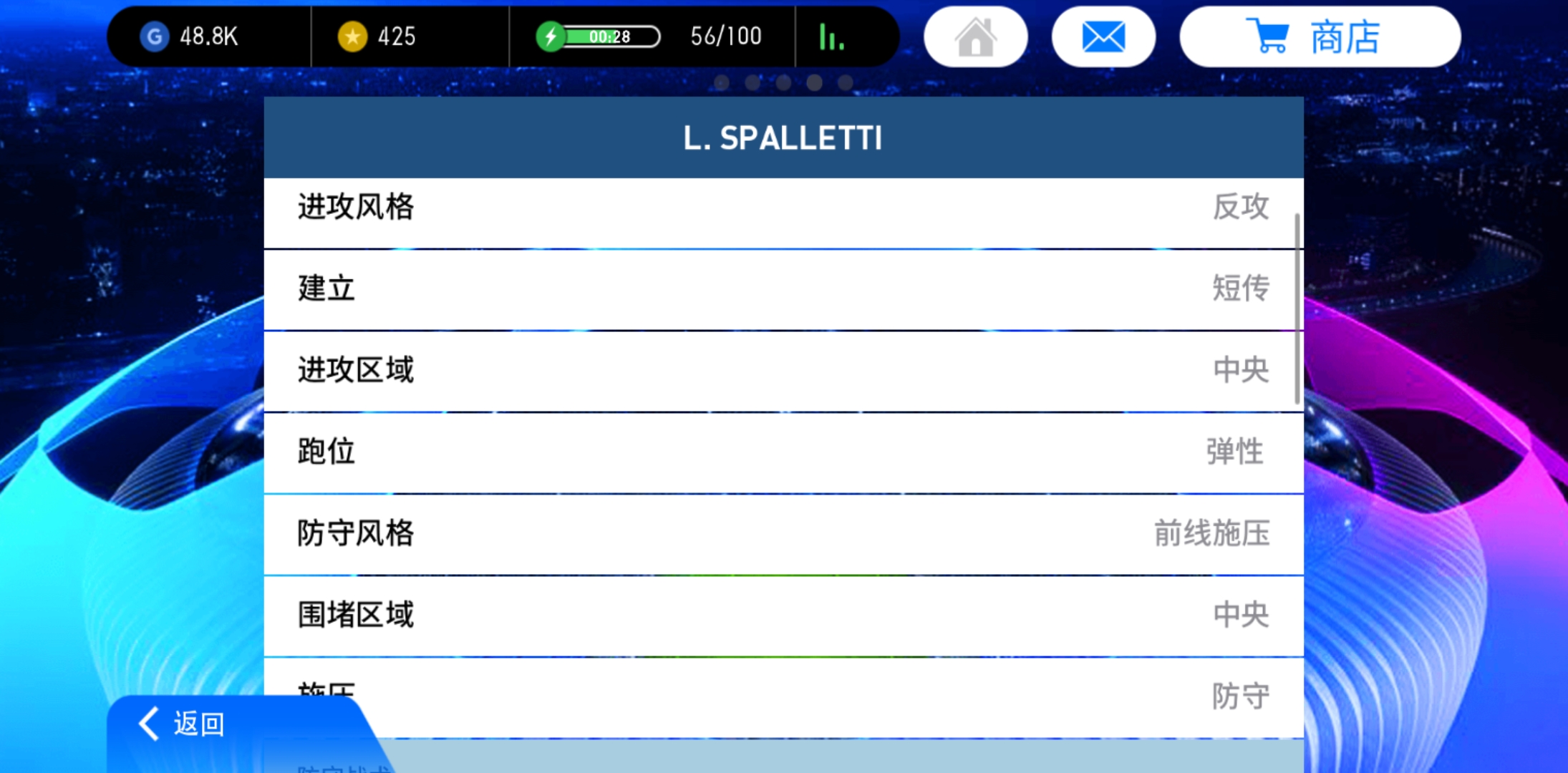 先讲进攻方面,菱形中场的配置配上短传打法,保证了中场的控制力,前腰的设置意味着前场至少有三个深度有本方人员,传球有更多可能性,而反击的战术会让球员迅速往前跑,反击时前场会很快占满本方球员