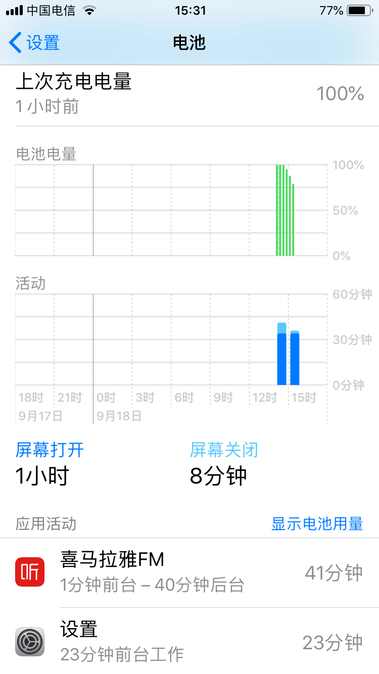 i6升级iOS 12后一小时耗电图