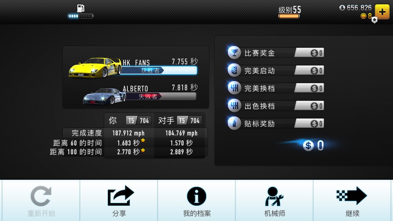 众所周知 每当打败一次boss后 会有一次获得boss车的机会。但是一般在该阶段,如果你不把赛车升级到顶,你是无法赢得赌车赛的,只能等到世界巡回赛时的复仇赛赢的boss车,但是难度会更高。因此,我们可以尝试在第一阶段就赢得赌车赛。下面放出T1T2的赌车赛成绩