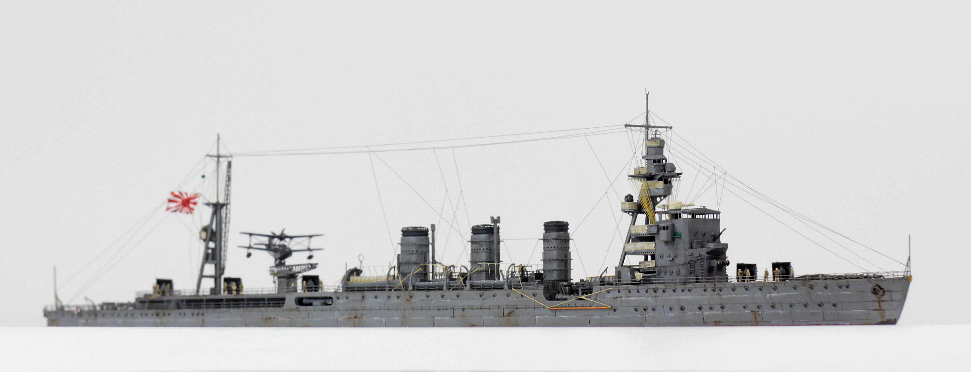 棒。喜欢这种舰炮舷侧的“战斗状态”。舰桥上层的瞭望和鱼雷方位角 都打开,摆俩小人就更棒啦!