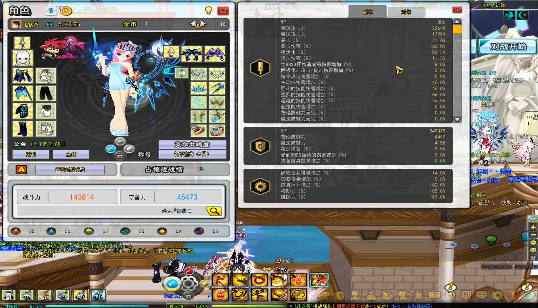 时装是时空套9 基本上全打了贤者 全是极大化和暴击 BM不缺暴击率所以打的极大化比较多 93.5%的极大化也是没谁了 武器+9 4Y 左四新村套 +8上衣 +8鞋子 +9下衣 +9手套 都打好了艾尔之泪 手套有个