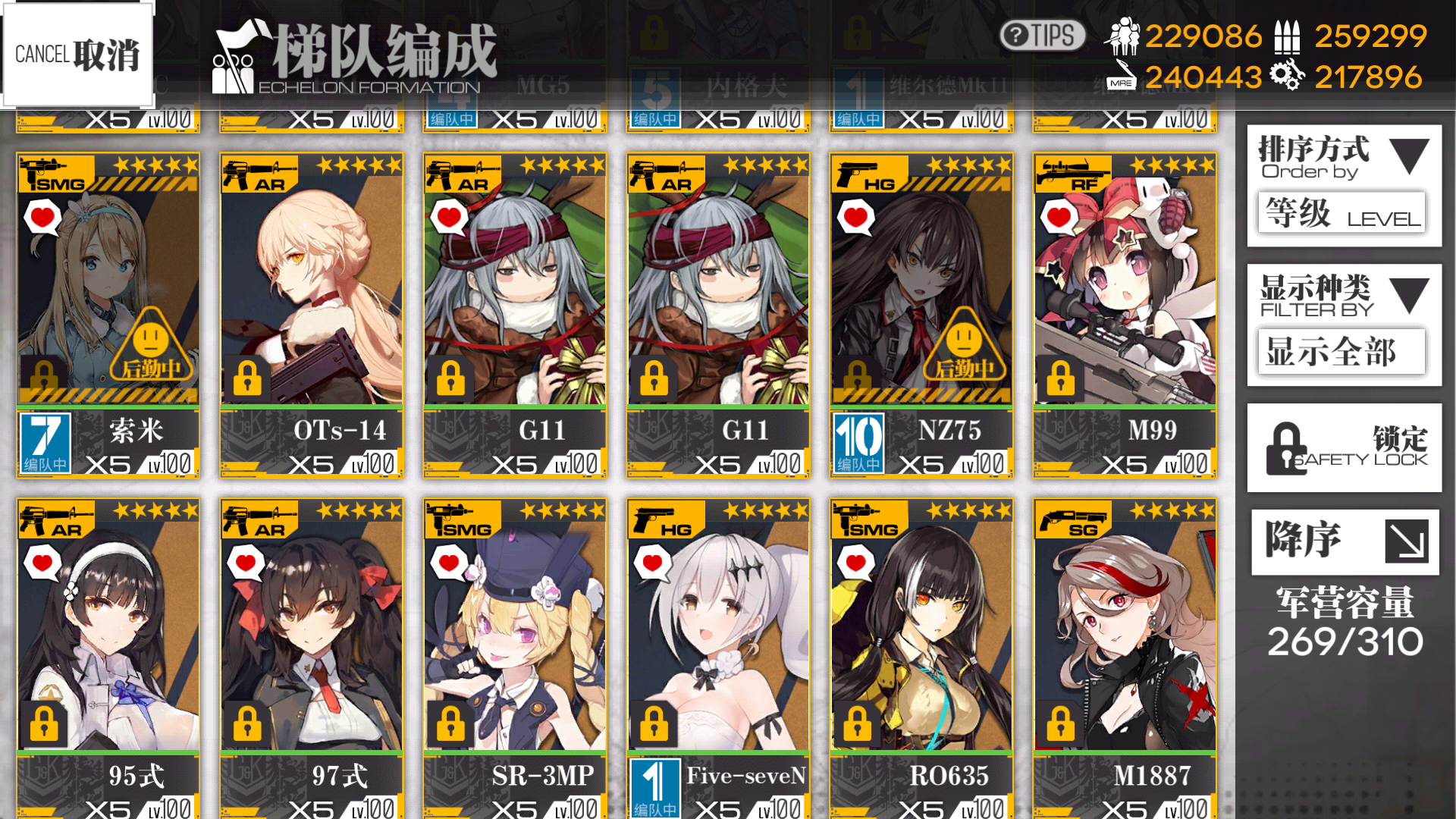 97收集,70满级十梯队宿舍,皮肤若干另有8黑卡,装备不缺