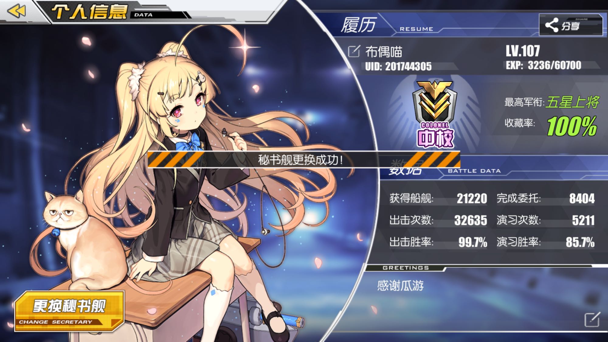 可能是第一次接触这种类型的游戏吧,说实话真的挺不错的,游戏机制立绘等等。我玩别的游戏挺非的,但是这个游戏让我觉得我是亚洲偏欧血统,大建和捞船基本上没卡过。最终也船齐霸业了(我的网速抢到中秃岛第11名),仅有的遗憾可能就是没上过海军元帅(老是错过几次)和没拿到鹊桥家具吧(当时练度低结果居然绝版了)