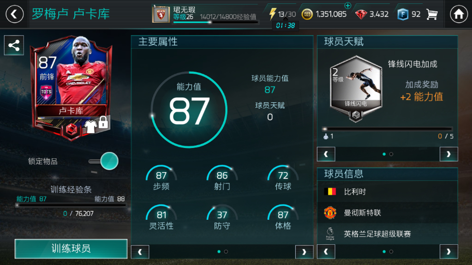 新人咨询,抽了个87的卢卡库,怎么样