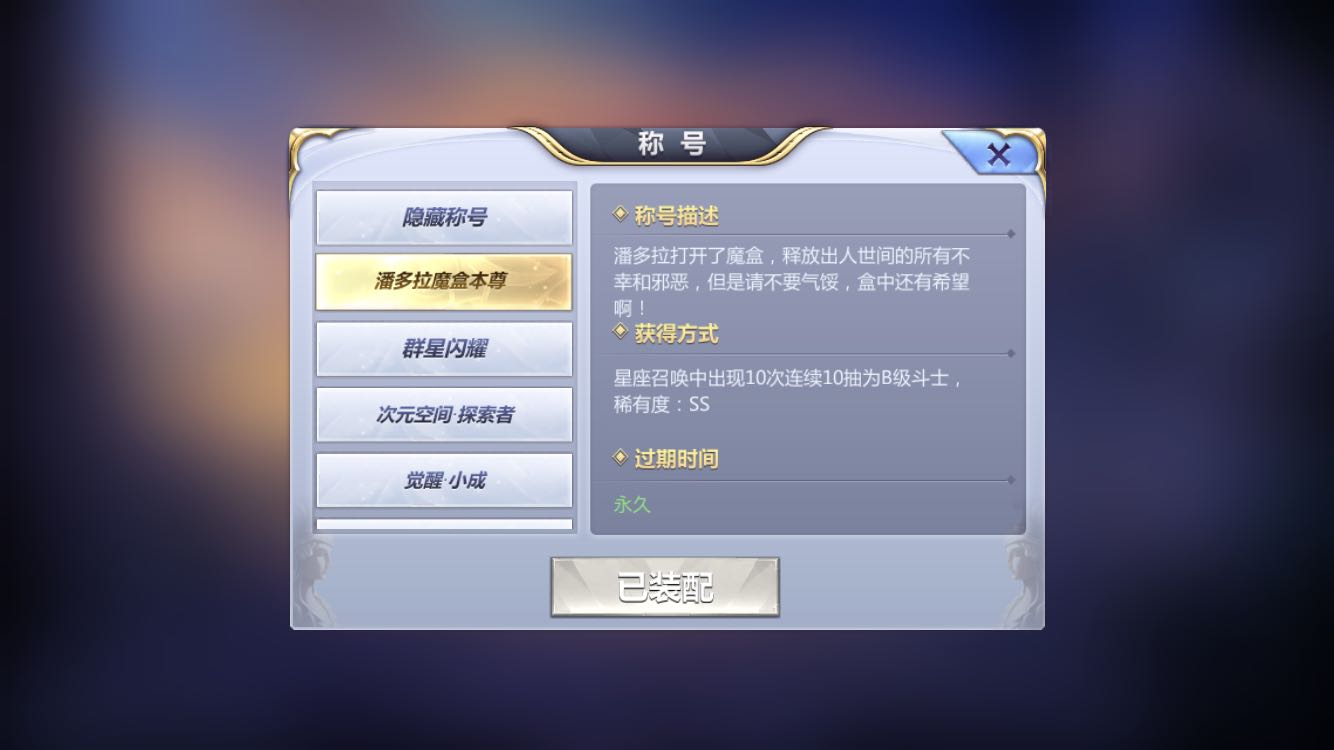 潘多拉魔盒本尊,十次十连抽都只有B才能出现在称谓,这个稀有度足以媲美古拉杜财团继承人了吧,还有谁比我惨的