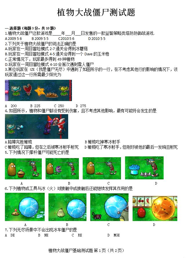 植物大战僵尸基础题