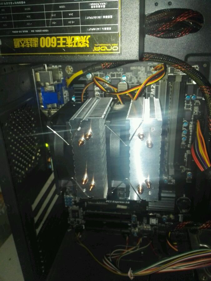 如图所示,风扇是朝内存条的,衣服照片是之前拍的。