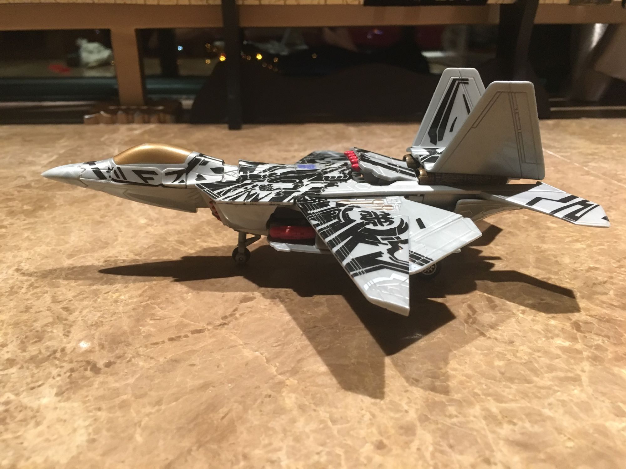 拿出飞机摆造型时,前后轮胎可以放下,都是打铆钉有涂装,可见诚意