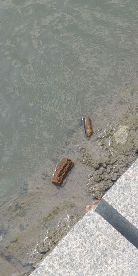 旁边还有根半米长的泥鳅搁浅了