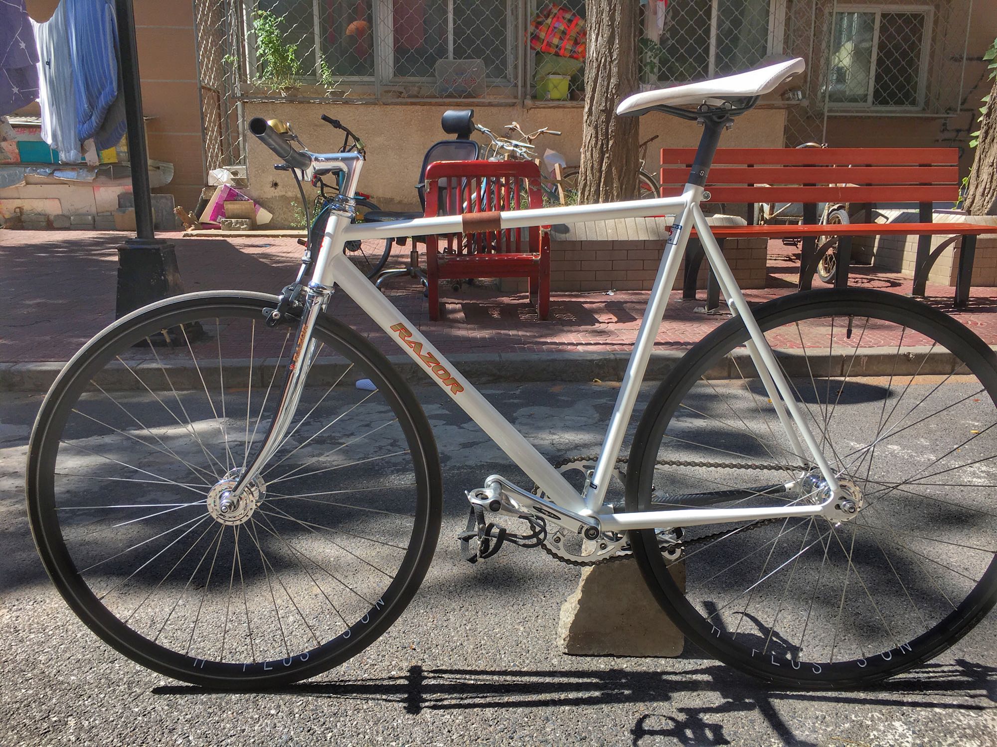 车架+前叉:proud cat razor 鸽子管(我记得是54的架子)