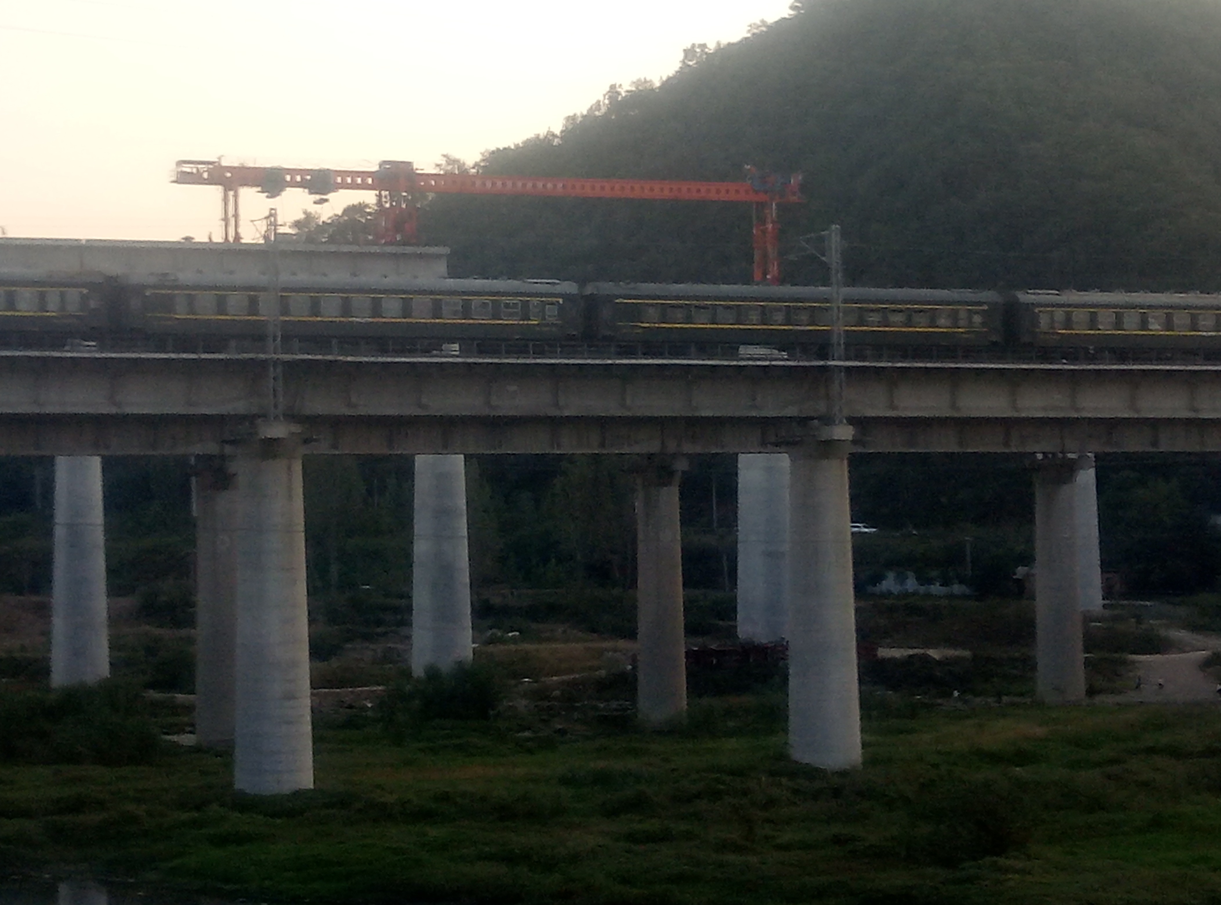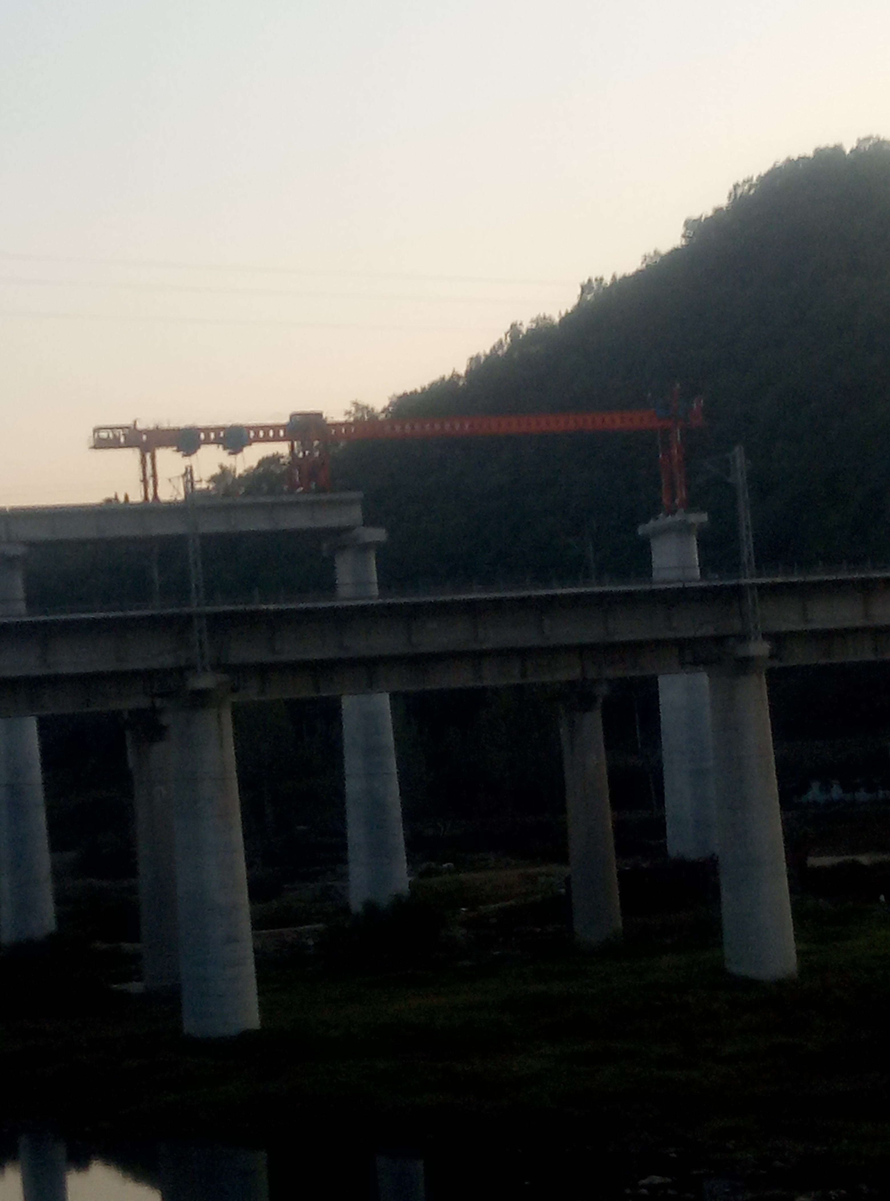 西峡县城跨鹳河处蒙华铁路国庆节假在架梁