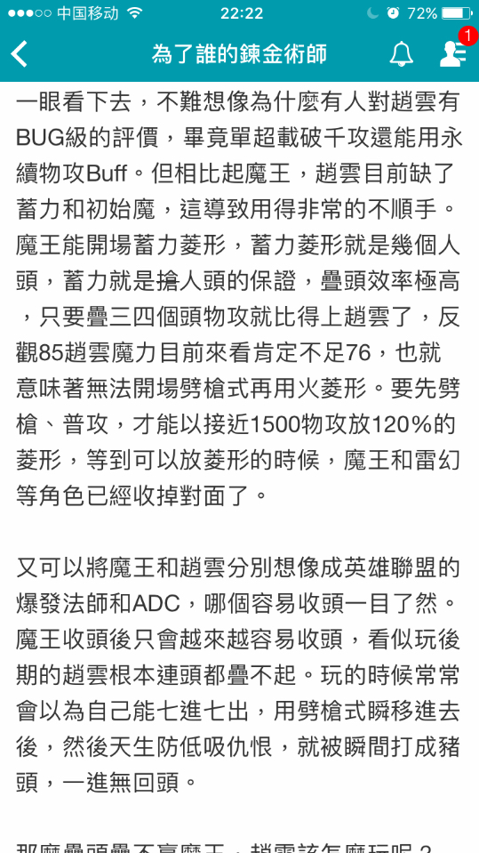 是啊,40%加成赵云的面板就有1400+了,魔王700+,那不就是魔王两倍蓄力状态了么
