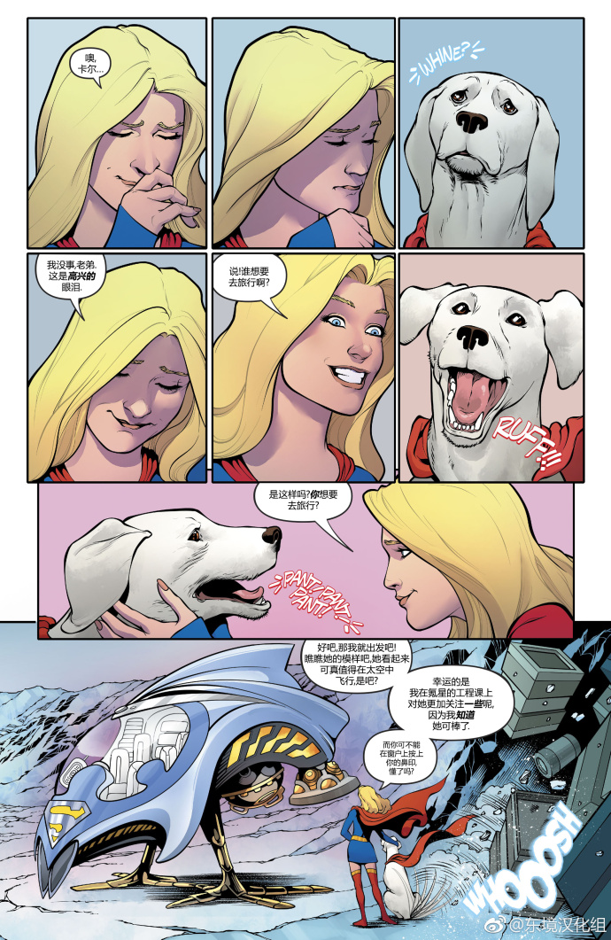 哈尔的帮助后得到了一丝希望。小氪的出现让卡拉欣喜若狂,原来是克拉克放心不下卡拉,让小氪来陪伴卡拉,毕竟他的妻儿才离开他,他也只剩下卡拉了。(小氪萌翻了~)