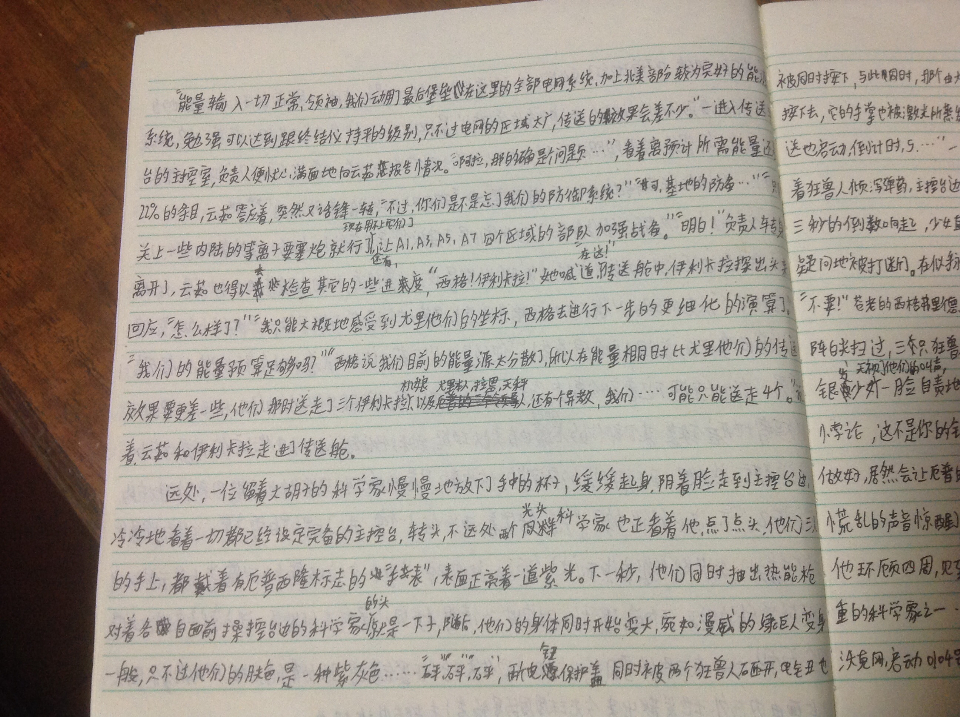 我又回来了,这个万恶的家伙,果然藏了一点,我感觉他可能是想写无限流一类的,但他的文笔...233,这是第4页,这四页是他写的第一章,估计在1800字左右吧,各位慢慢看,这**来找我算账了,希望我明天能正常上djnnjmmm.....@d