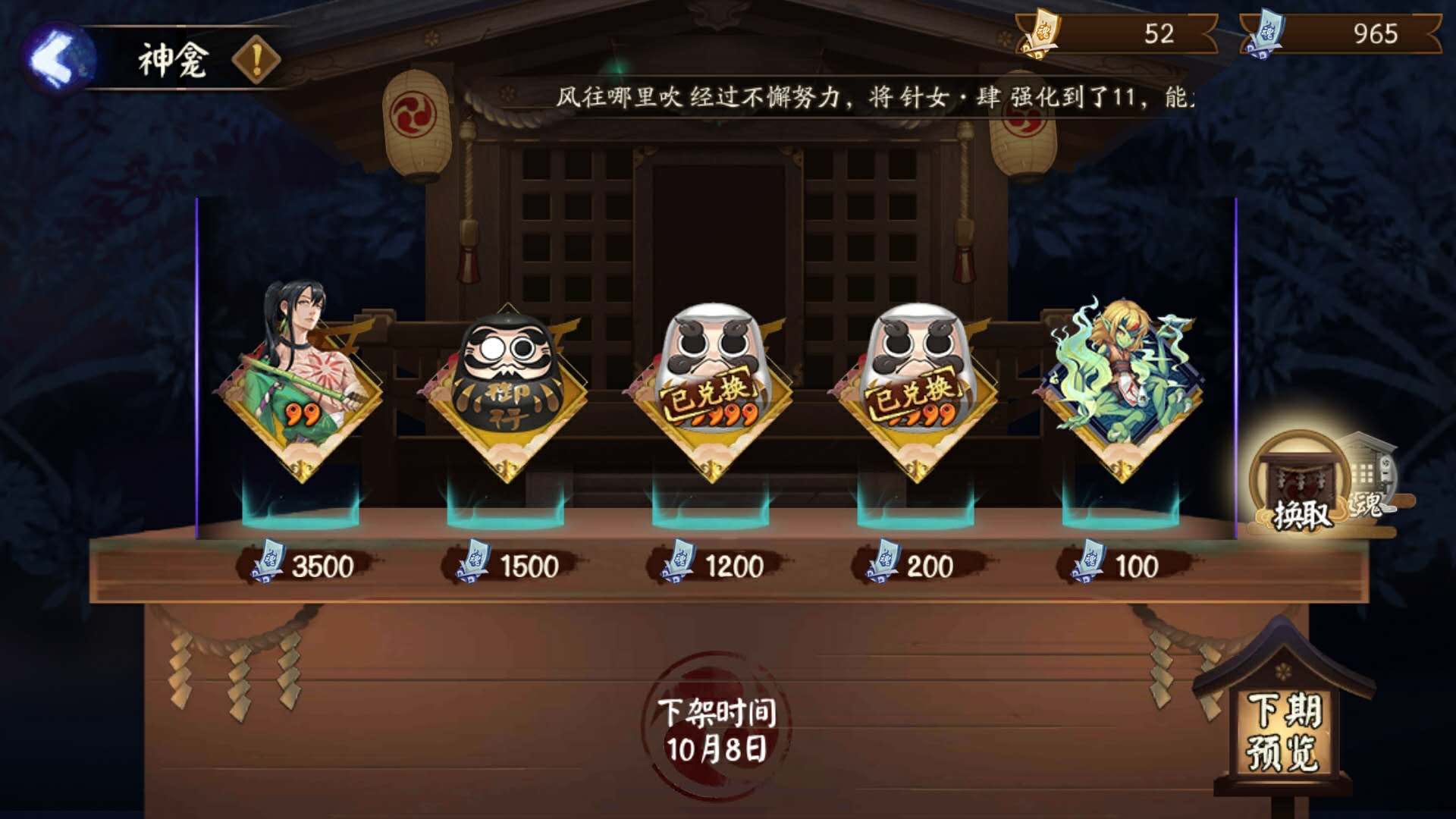 不急着拿碎片而且自己有输出的话,御馔津可以不升级技能,毕竟斗技用来恶心人的,当控制就好了,升级技能只加伤害并没有加什么概率或者特效