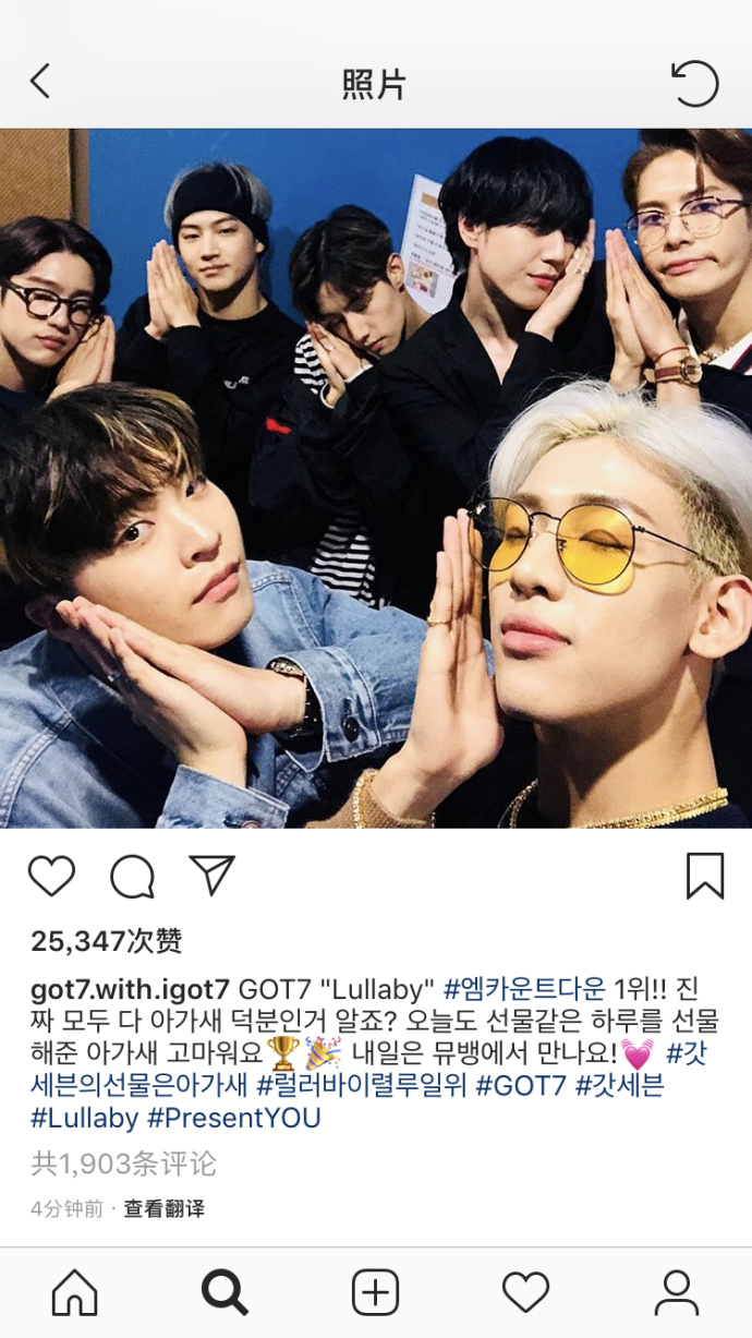 GOT7 "Lullaby" MCD 1位!! 真的是托了所有鸟宝宝的福 知道吧? 谢谢鸟宝宝送给我们今天也是像礼物般的一天🏆🎉 明天在音乐银行见!💓