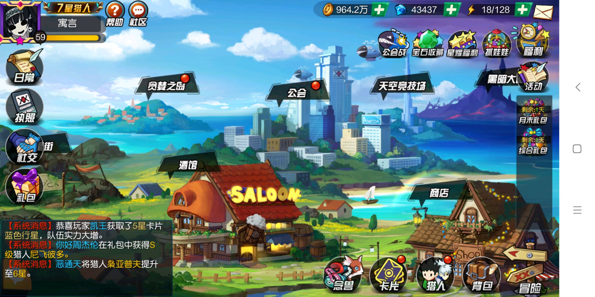 月卡党57级就7星猎人了