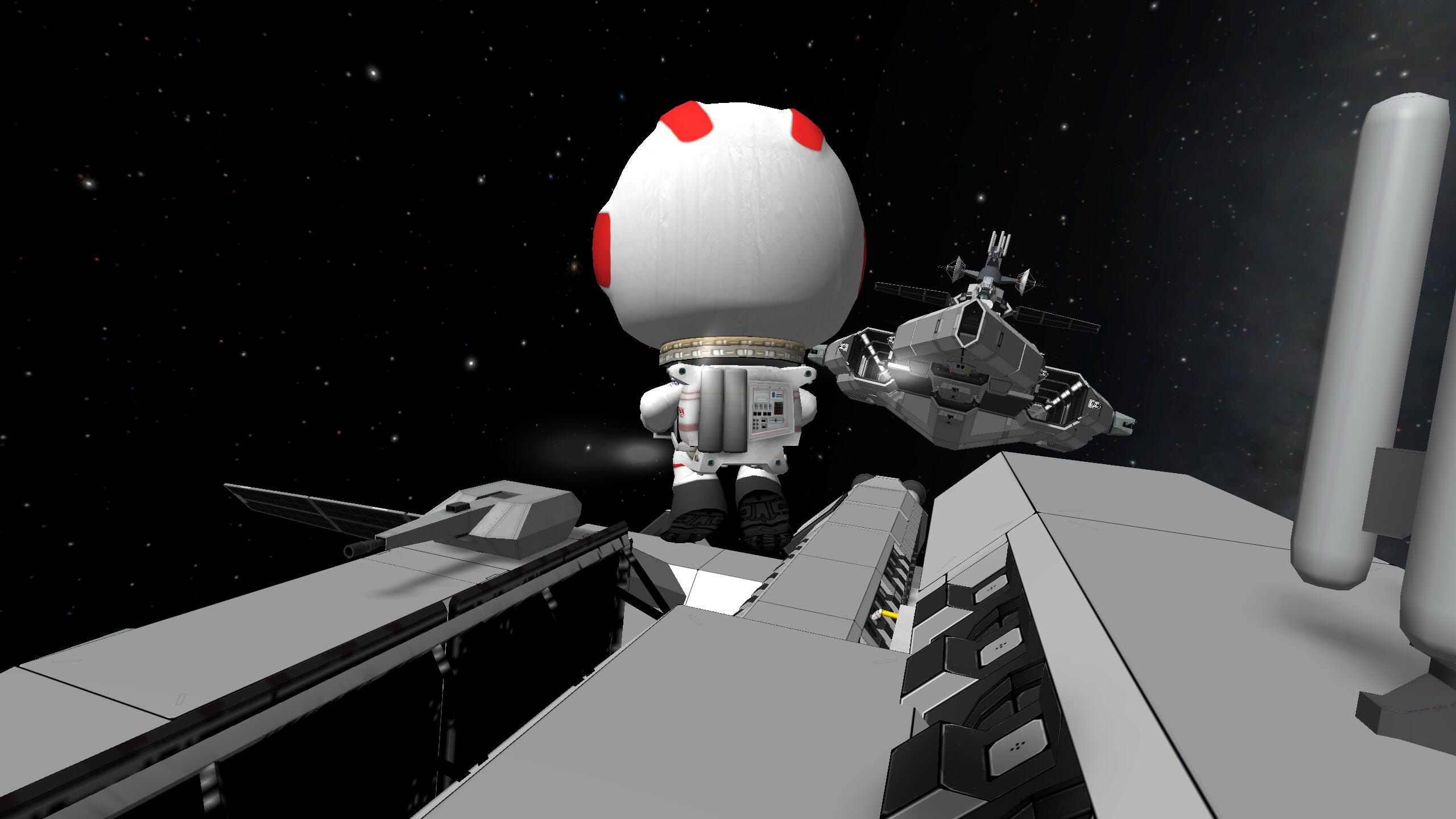 仔细想来,坎巴拉载具这种东西,在一个场景中也加载不了几个,我也只能运行3vs3机炮战、2vs2的空对空导弹交战。这只是零件数不超160的战机,战舰就更少了,加载出来也会是卡到不能接受的地步。既然这样,那就提高单一载具的观赏性和和可玩性,能想到什么有趣的功能就加上去,PB生活区对于战舰来说根本没必要,但是装上去就多了份生活气息,想象一下,战斗之余,小绿人也会在战舰上喝茶、观星、培育植物,就像《机动战士高达:雷霆宙域》里所描绘的那样。为什么ksp战舰可以有这些不重要的用途?因为相对于现实来说,在这个游戏里设计载具时要考虑的取舍并不用太谨慎。