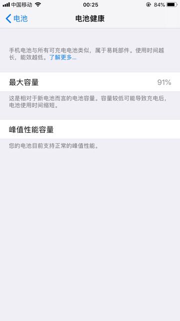 原装电池的电池状态91%