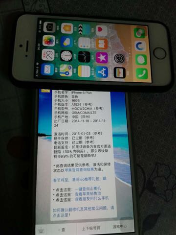 查询一下才发现激活日期是15年1月3日,14年底定的机子,朋友帮忙美国带回来的,美版无锁,通信支持移动2G和联通电信4G,现在全程用联通热点Wifi,无需移动公司的4G网络流量。